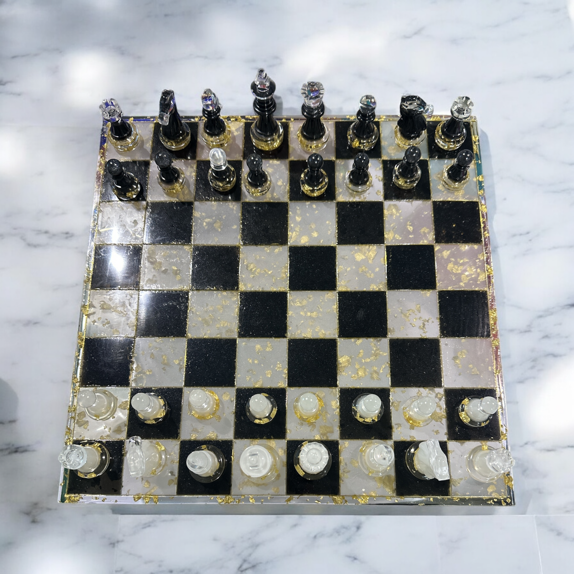 Das handgefertigte Resin Schachbrett bringt ein neues Level an Eleganz und Stil in Ihr Schachspiel. Mit seiner hochwertigen Verarbeitung und den einzigartigen, in Resin gegossenen Details vereint es moderne Kunst mit traditionellem Spielspaß. Jede Schachfläche ist kunstvoll gestaltet und zeigt die faszinierenden Farbspiele des Resins, was das Schachbrett zu einem unverwechselbaren Hingucker macht. Das edle Design und die besondere Materialwahl machen dieses Schachbrett zu einem idealen Geschenk für Liebhaber des königlichen Spiels.